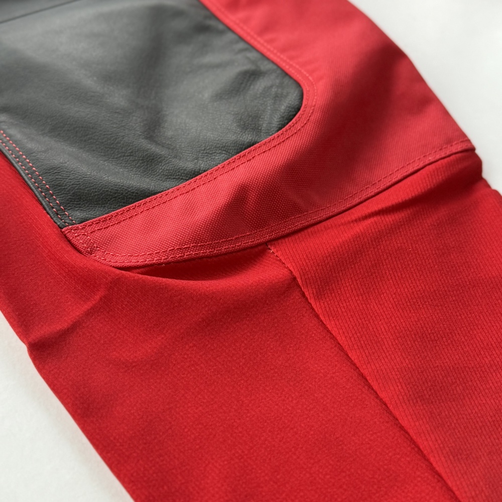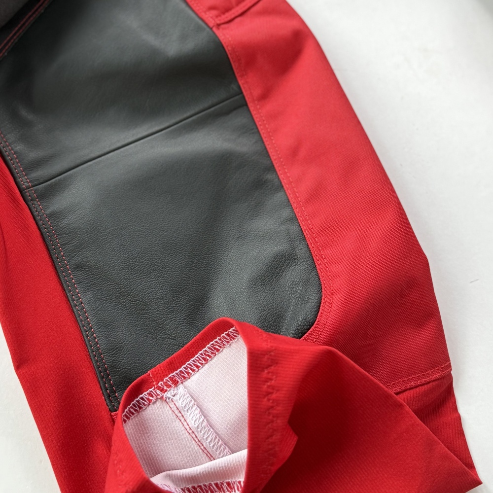 Inside: Goatskin inner knee for superior bike grip and greater resistance to abrasion