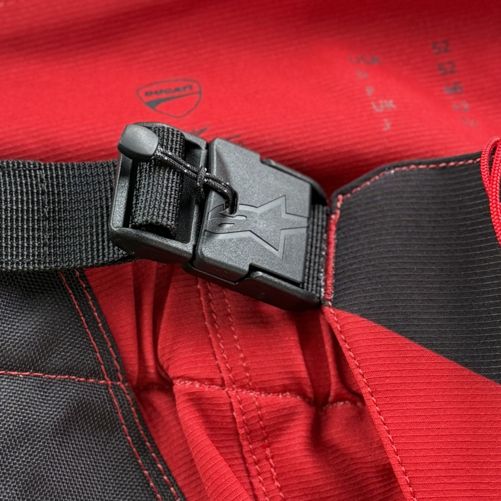 The Ducati Desmo trousers, made by Alpinestars and designed by Aldo Drudi, is the perfect blend of performance, durability and comfort, up to the standards of advanced competition on any terrain. The multi-material construction - lightweight and unlined - provides the highest levels of ventilation, fit and stretch, for maximum freedom of movement and great ease of use even with tutors or protectors. 4-way stretch fabric on the yoke, thighs and upper knees provides flexibility, while strategic laser perforations and gusseted construction significantly increase ventilation, ensuring constant airflow.