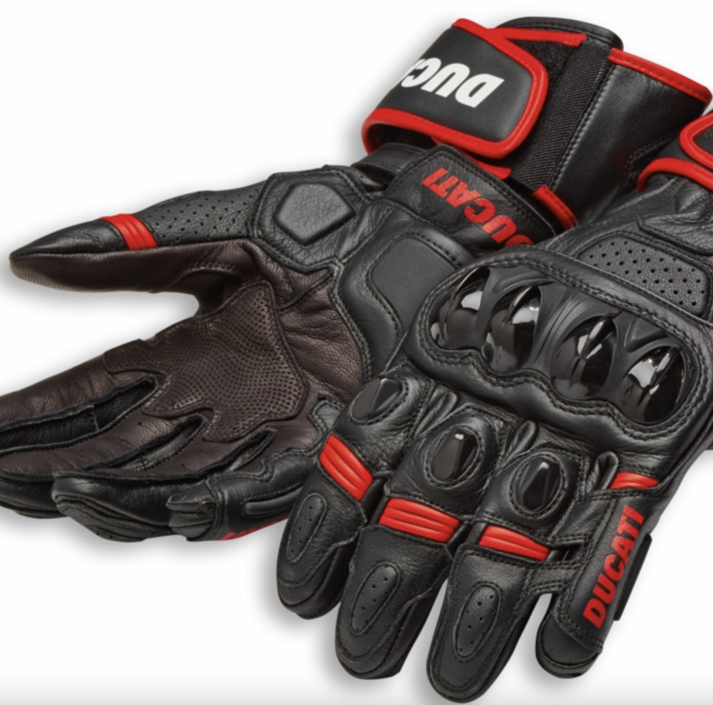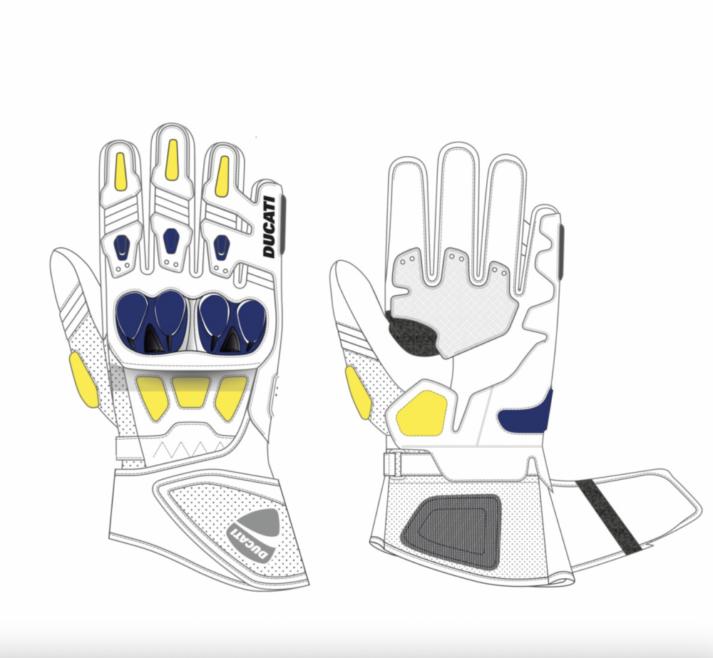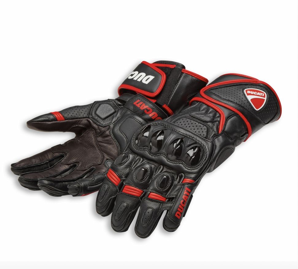 The Speed Evo C1 gloves, made by Alpinestars for Ducati in two color variants, have a pre-curved construction designed for sport use. They are made of a combination of leather and goat leather with elasticized inserts to provide total freedom of movement and maximum sensitivity on the controls. The gloves, entirely CE-certified, have injected thermoplastic protectors with integrated vents, shock-absorbing inserts in the areas most subjected to impacts, and a wrist-protecting reinforcement near the double Velcro™ closure on the forearm.