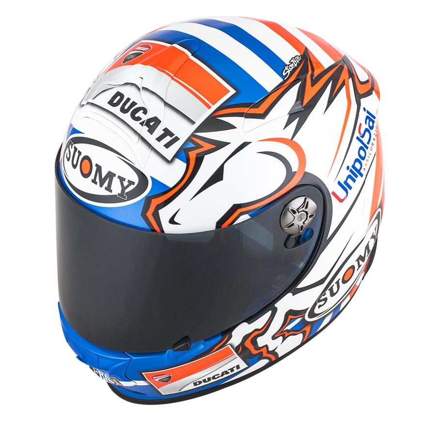 The Dovizioso Replica helmet, crafted by Suomy, faithfully reproduces the iconic graphics and unmistakable look of the legendary rider and MotoGP® team. Its reinforced shell is made from a carbon-fiber blend and developed in two sizes for an optimized fit. Limited Edition!