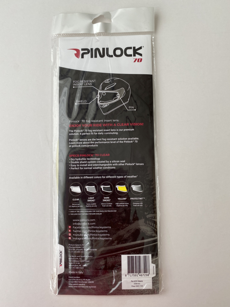 The Pinlock 70 fog resistant insert lens is our premium solution. This lens has become the benchmark for fog resistant performance that is most commonly used by riders across the world. The insert is made of a moisture absorbing plastic and, therefore the surface basically dry when used. The insert has a silicone seal that creates a double shield system.