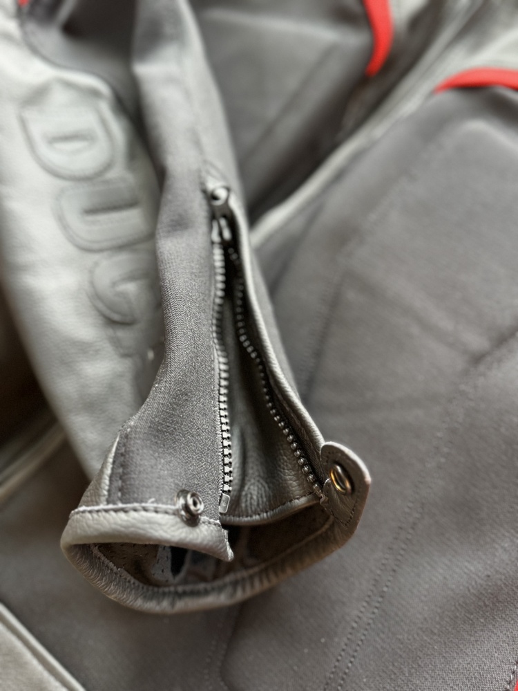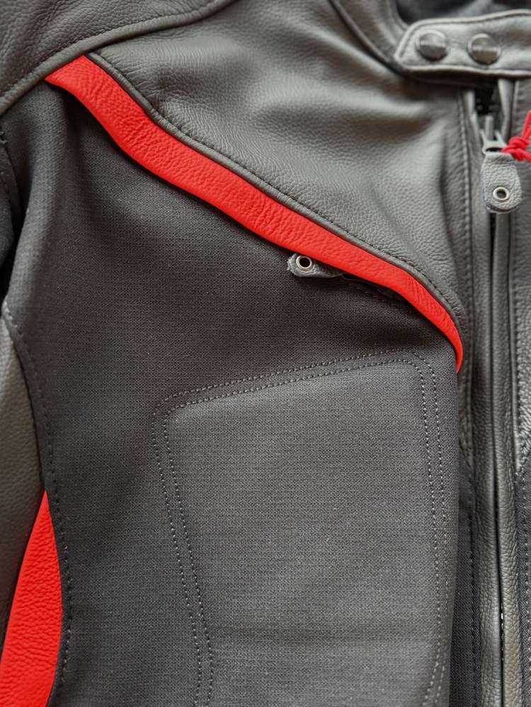 Manufactured by Dainese exclusively for Ducati, the Fighter C2 jacket has a modern and aggressive design that goes well with the black aluminum protectors on the shoulders and the neon red details that recall its Ducati DNA. Made of supple cowhide and stretch fabric, the Fighter C2 has air vents on the back and the chest, a zipper for attaching the trousers, and is ready for use with a back protector (to be purchased separately). Available only in a men's version, it is fully CE-certified according to the latest European standards.