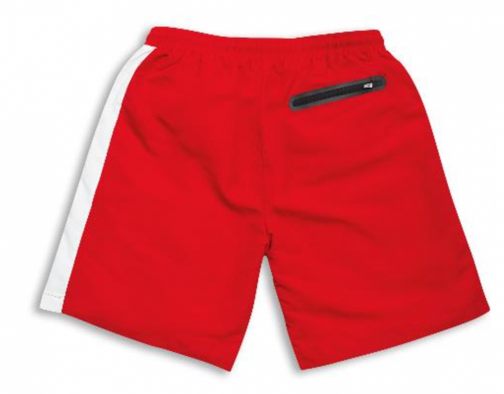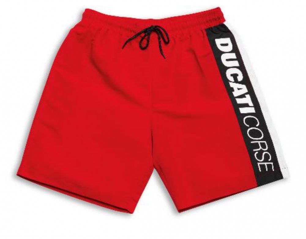 The Ducati Corse logo and livery give it a 100% racing vibe! This men's swimsuit has an adjustable elastic waistband with practical drawstring, and is made of a fast-drying fabric with a high level of breathability. Soft and comfortable on the skin, it is the perfect accessory for your vacation.