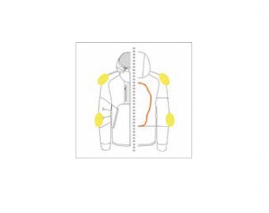 Inside Fixed lining in 100 g/m2 polyester meshKeramide inserts on the shoulders, elbows and back
