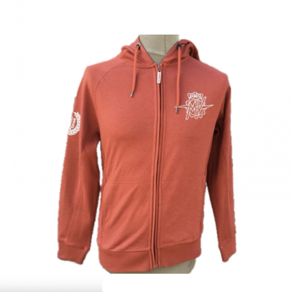 MV AGUSTA Men's Hooded Sweatshirt, Sweater Cotton Zipper Orange Brown, XXL