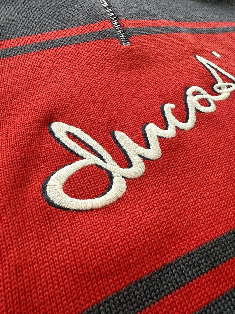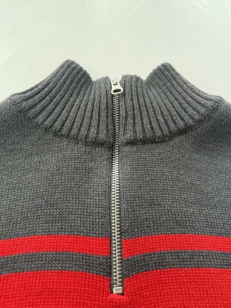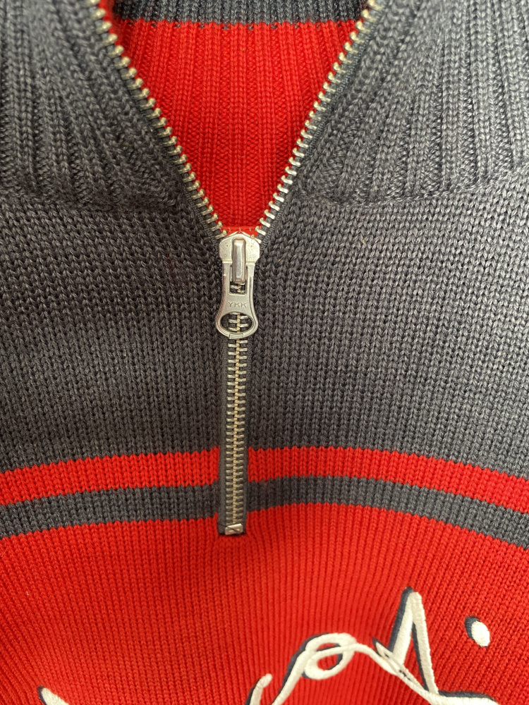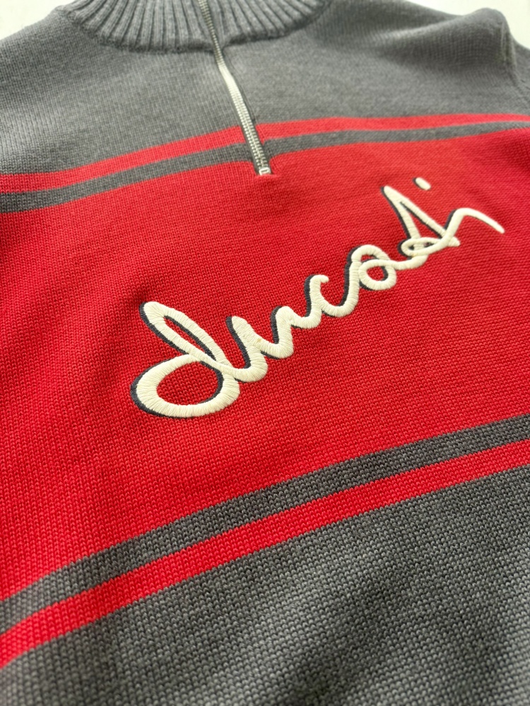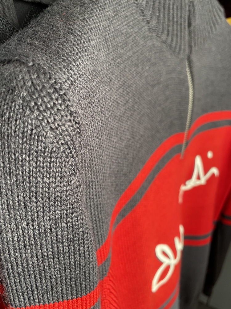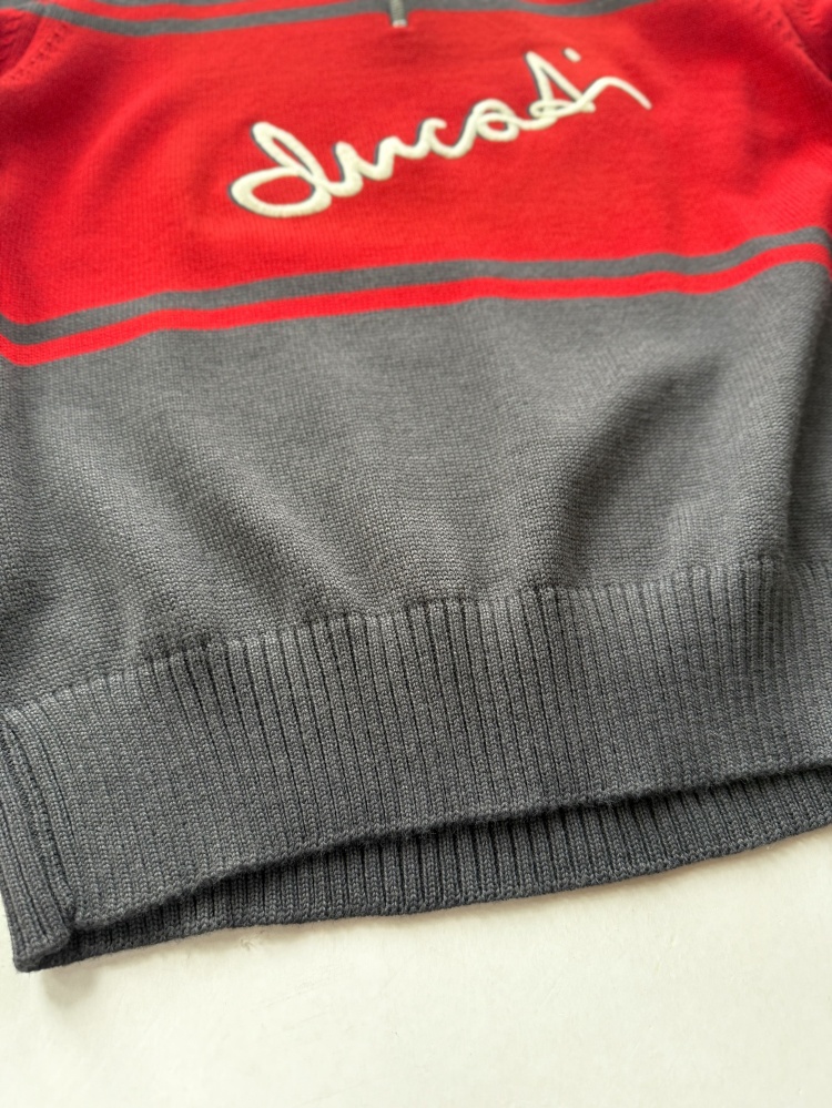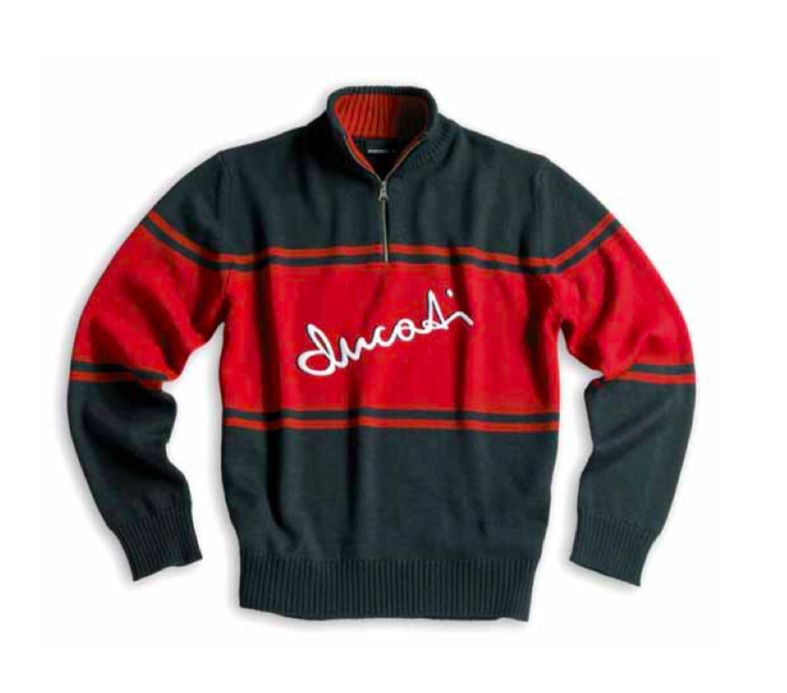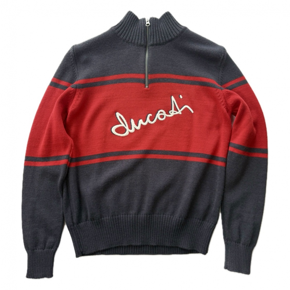 Men's Knitted Sweater Italic 49 Red/Grey Ducati, Non-Iron, 1/4 Zipper, Size: S, XL