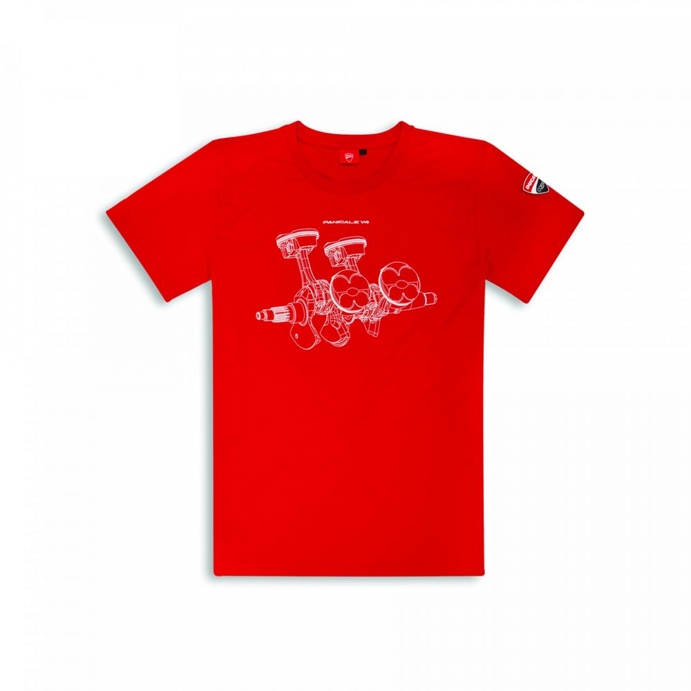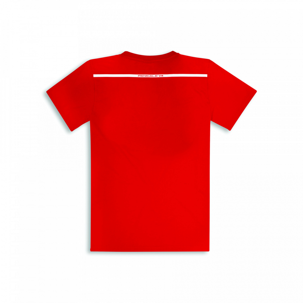 Change gear with the V4 Panigale T-shirt. Technical design and Ducati red in a winning combination dedicated to Italian excellence.