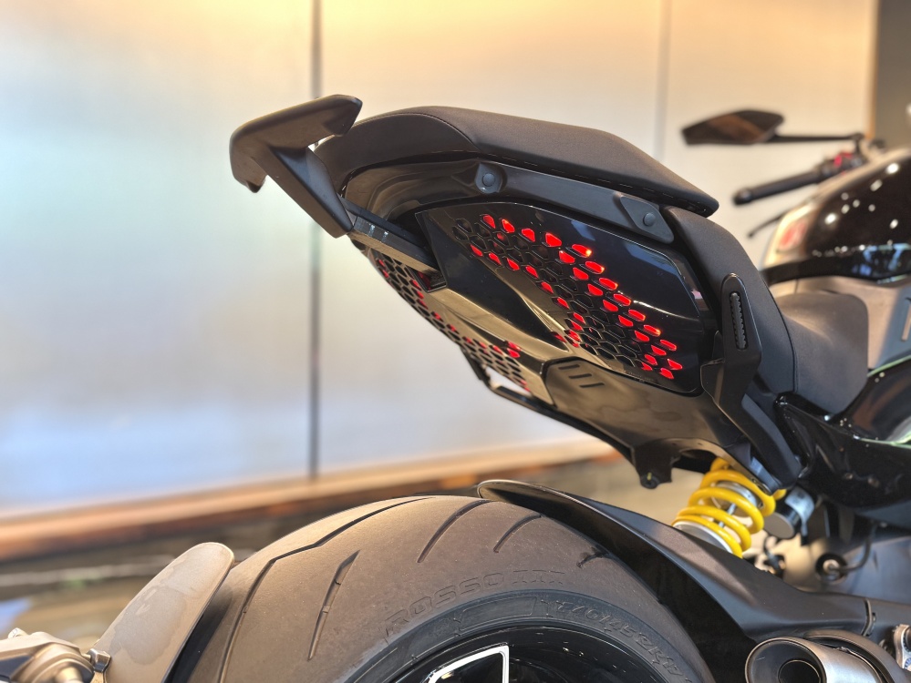 Aprīkots ar jaudīgu 1,158 cm³ V4 Granturismo dzinēju ar 168 ZS un 126 Nm griezes momentu, kas nodrošina izcilu veiktspēju gan pilsētā, gan šosejā. Vieglā konstrukcija un elektronika (ABS Cornering, Traction Control, Wheelie Control u.c.) nodrošina drošu un dinamisku braukšanu. Unikāls Diavel dizains. 240 mm plata aizmugurējā riepa, LED apgaismojums un sportiski elegants siluets. Aprīkots ar komfortablu sēdekli. Tehniskās apkopes veiktas DUCATI RIGA. Motocikls ir Ducati Rīga Demo motocikls un ir teicamā kārtībā ar ražotāja garantiju.