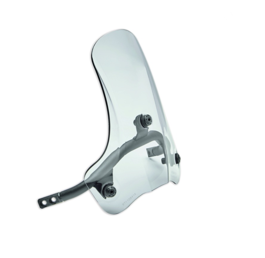 Complete with all mounting hardware, this streamlined windscreen provides improved aerodynamics and sleek looks. Exclusively for the Ducati Scrambler by Ducati Performance. Elegant and functional, it effectively protects the rider against the air when travelling outside the city. The design and smoked colour are in line with the Scrambler style.