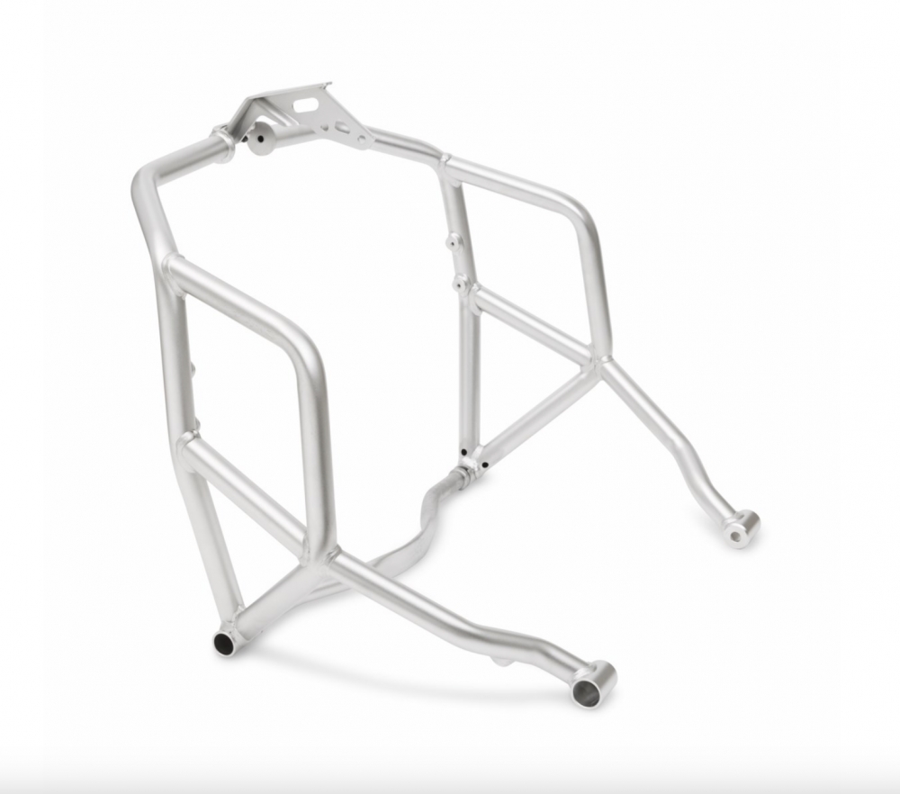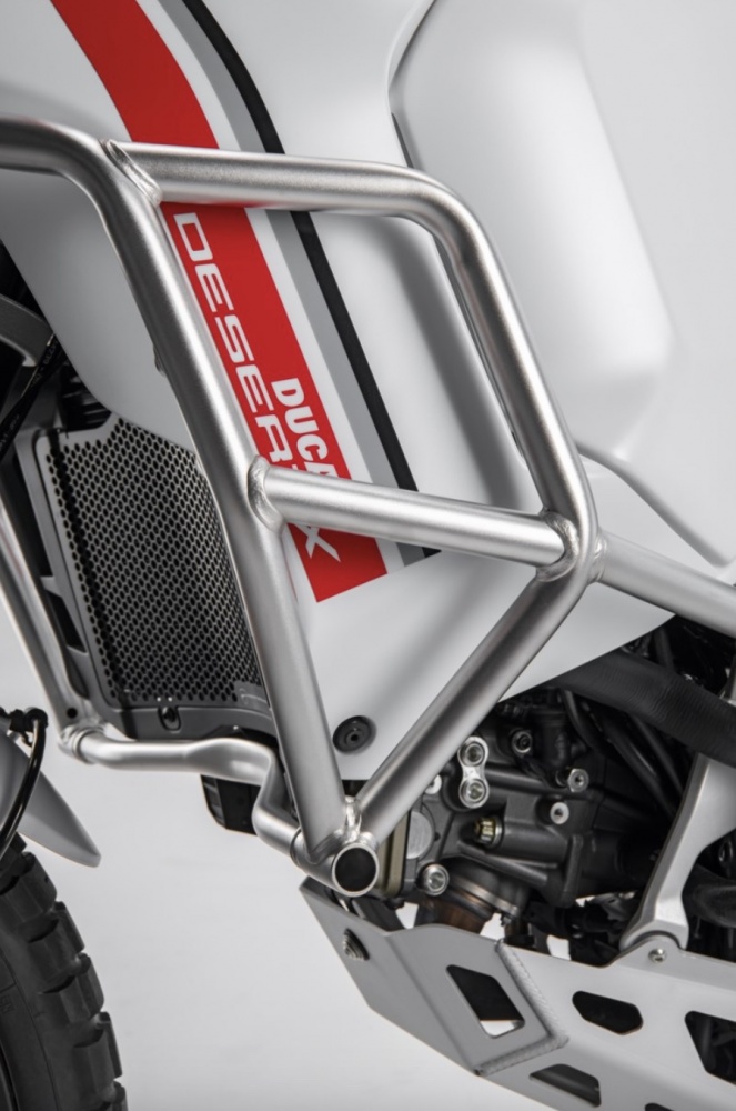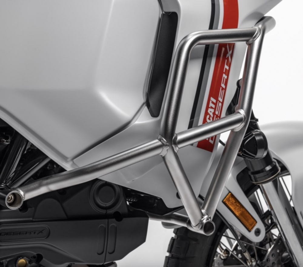 The perfect accessory for protecting the engine and the tank from possible falls and impacts resulting from using the bike on rough terrain or everyday use. Safe and perfectly integrated with the bike's line, thanks to its exceptional sturdiness and design. It enhances the unmistakable look of the DesertX by giving it an edgy character and accentuating its wild spirit.