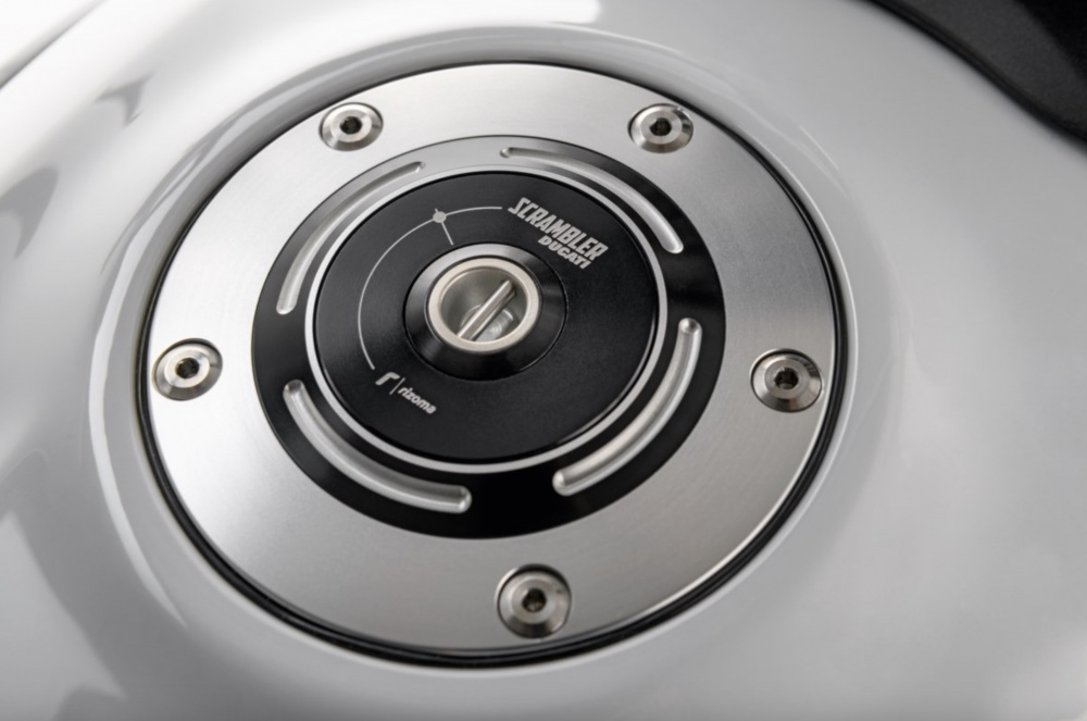 Ducati Scrambler tank cap made of aluminum Developed in collaboration with Rizoma, made of aluminum and made from solid materials - with high-quality, visible treatments.
