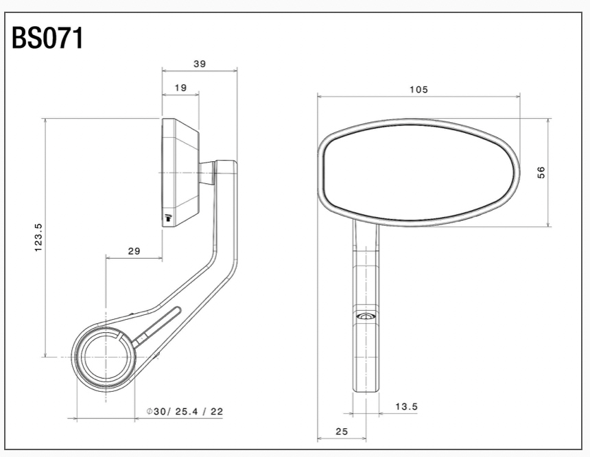 Bar Mount mirrors mount in combination with the specific Bar Mount mounting kits (part nr. MA434A or MA434B) only. No other Rizoma/OEM bar-end plugs suits the installation of these mirrors.