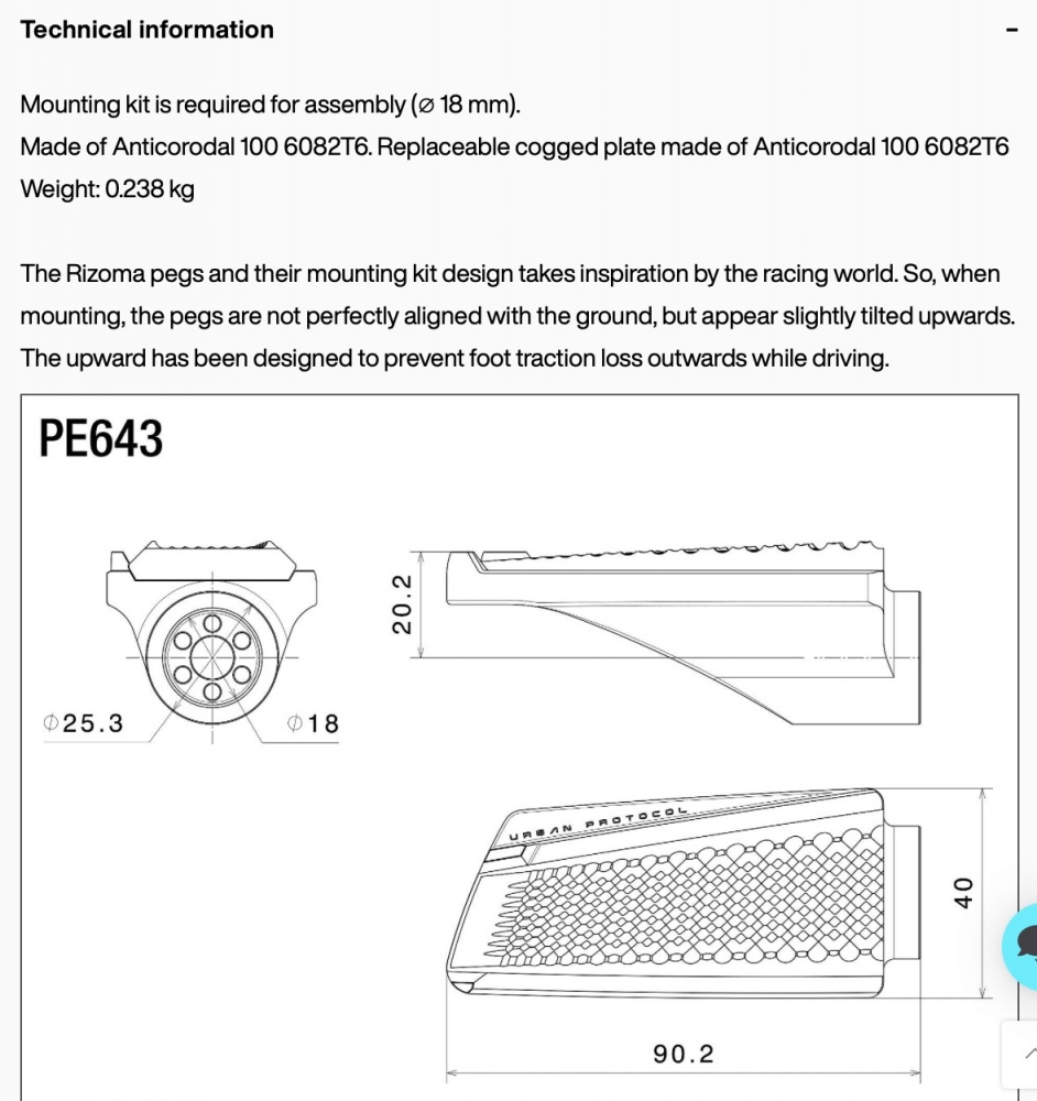 Rizoma URBAN PROTCOL PEGS footpegs, Black Silver (pair)