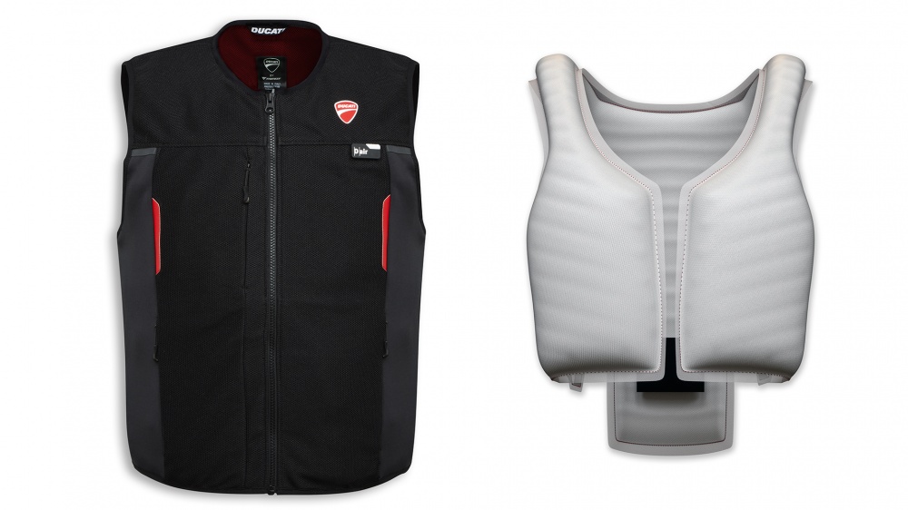 Ducati Smart Jacket D-air® ir jaunākās paaudzes drošības veste, kurā izmantota Dainese izstrādātā D-air® gaisa spilvena tehnoloģija. Tā nodrošina augstākā līmeņa aizsardzību, neprasot tradicionālos cietos protektorus, un vienlaikus saglabā vieglumu, elastību un komfortu. Veste ir ērti valkājama gan virs, gan zem motocikla jakas, tāpēc tā piemērota dažādiem braukšanas stiliem un sezonām.