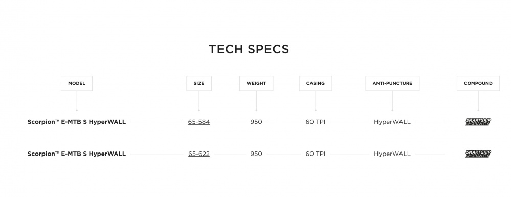 With their Scorpion mountain bike tires they don't have to hide from the competition either. The Pirelli Scorpion S is the expert on all types of loose and soft surfaces. Its high profile with wide lug spacing ensures perfect grip. The depth and rigidity of the lugs promotes underground penetration. Its HyperWall carcass, inspired by the Pirelli motocross segment, makes the tire stable enough for E-MTBs and gravity use.