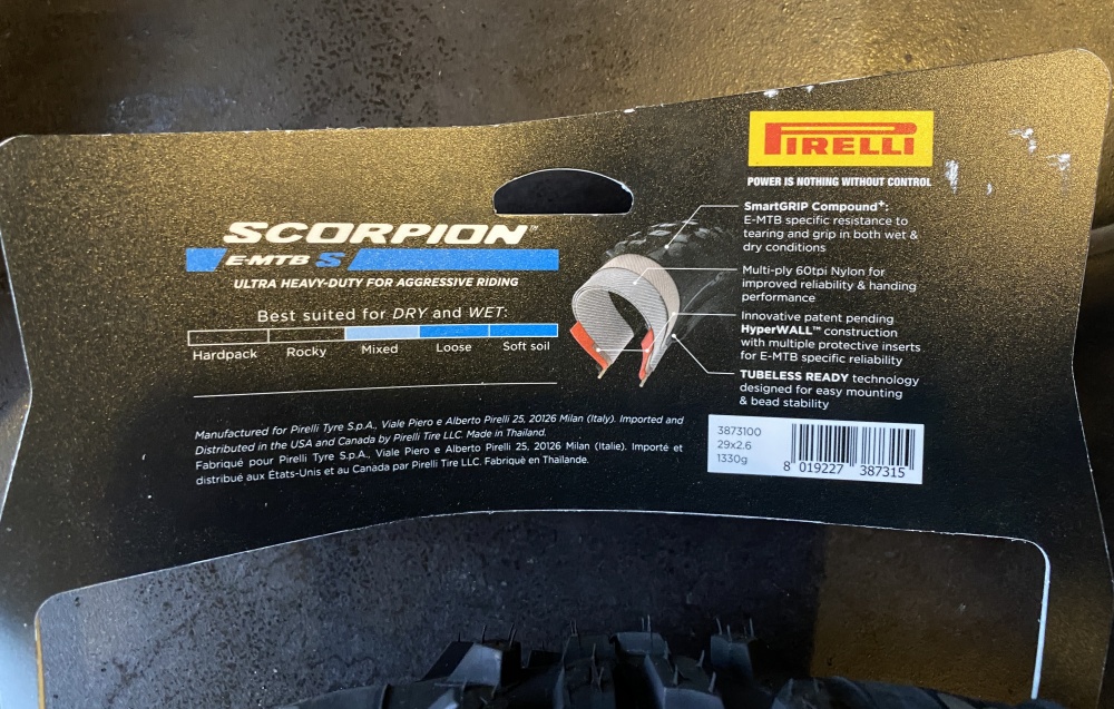 Pirelli Scorpion E-MTB S BIKE FOLDING TYRE FRONT 29x2.6 ETRTO 65-622 ON RIM 35C